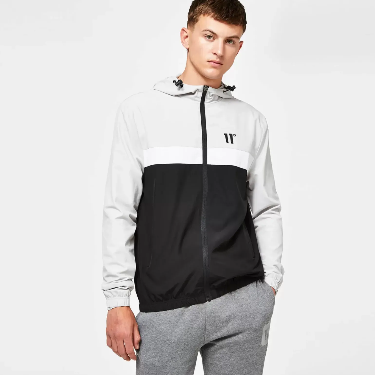 11 Degrees Colour Block Track Top With Hood – Black / Vapour Grey / White