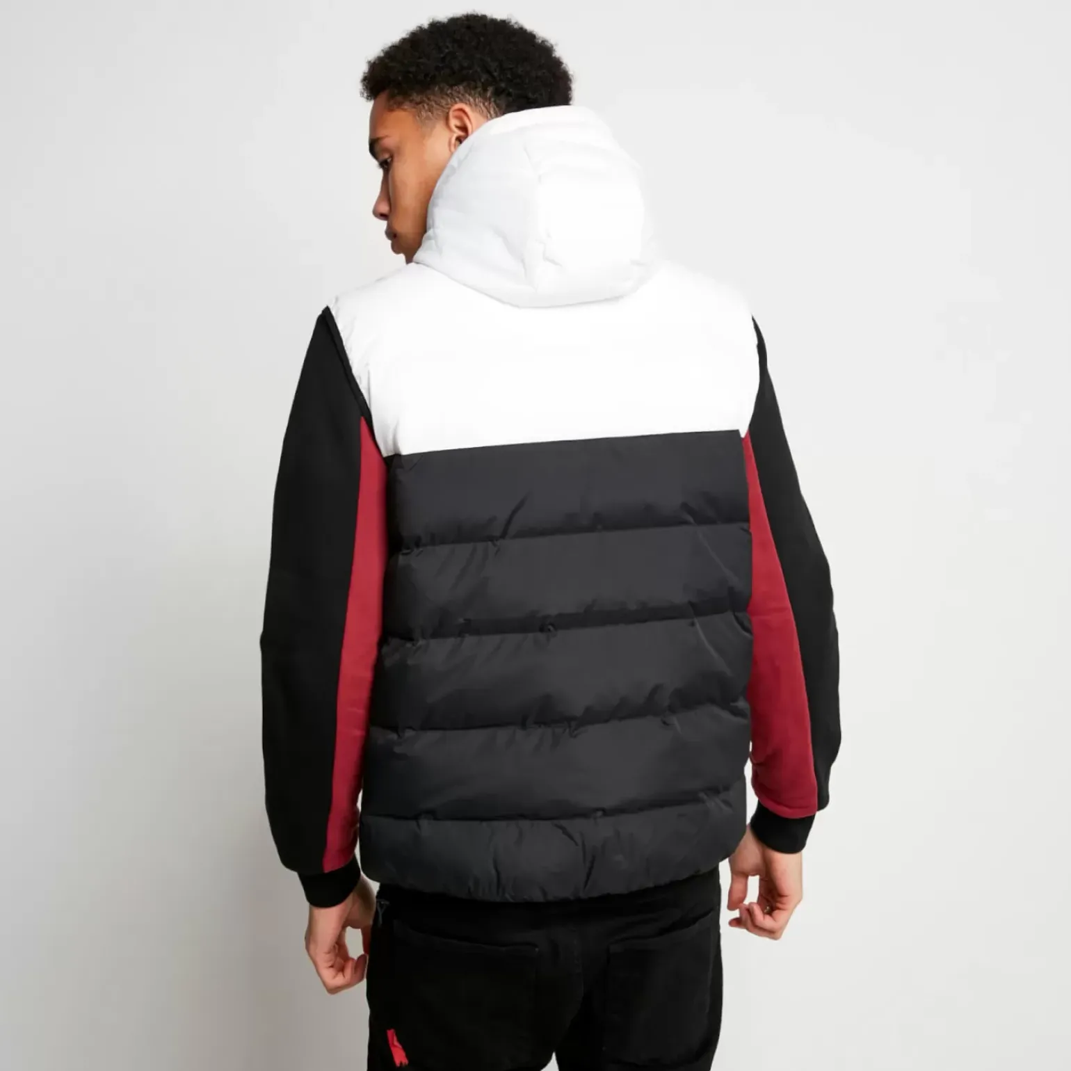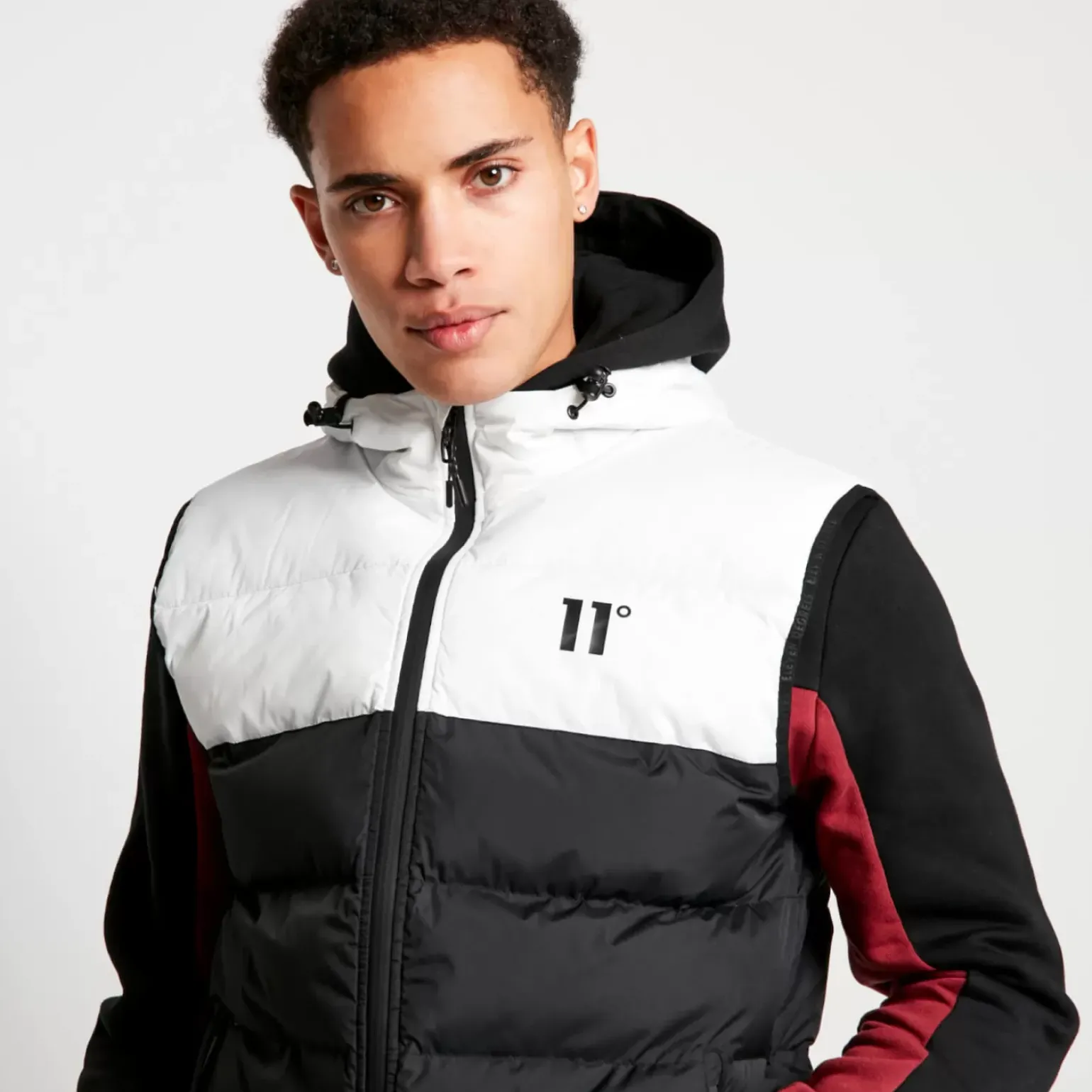 11 Degrees Panelled Block Puffer Gilet With Hood – Black/White