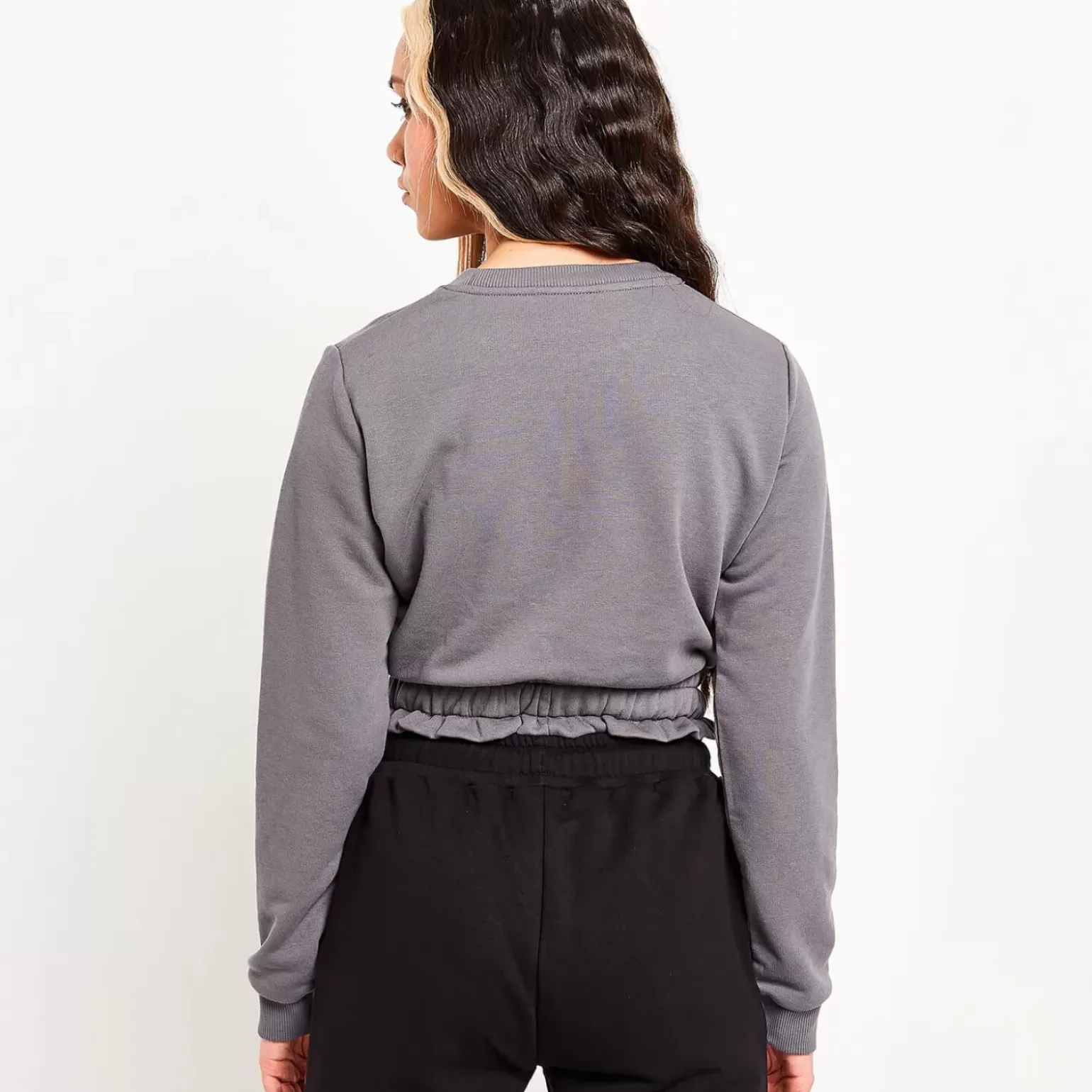 11 Degrees Womens Paperbag Waist Cropped Sweatshirt – Shadow Grey