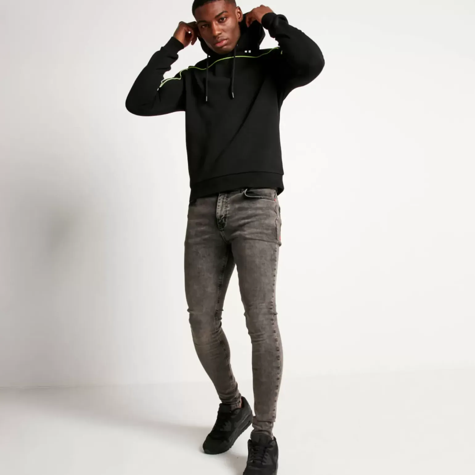 Gradient Piping Pullover Hoodie – Black