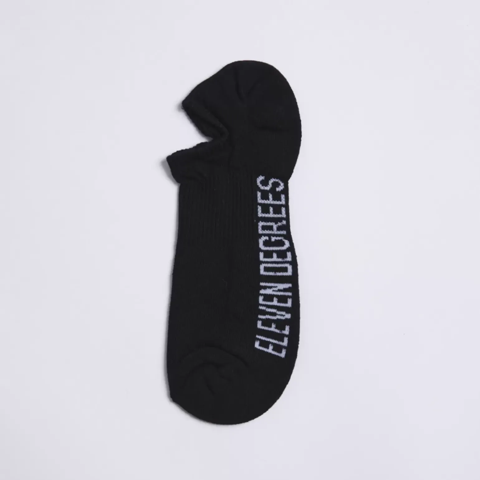 11 Degrees 3 Pack Text Graphic Trainer Liner Socks – Black/Black/Black