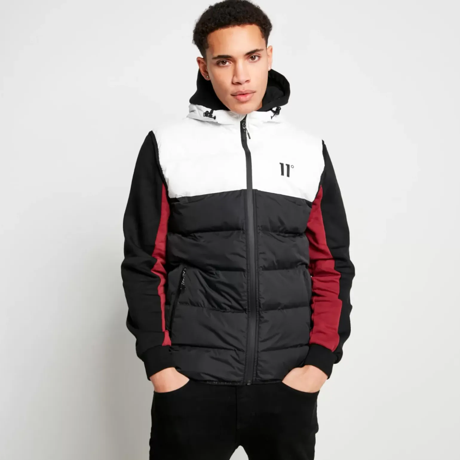 11 Degrees Panelled Block Puffer Gilet With Hood – Black/White