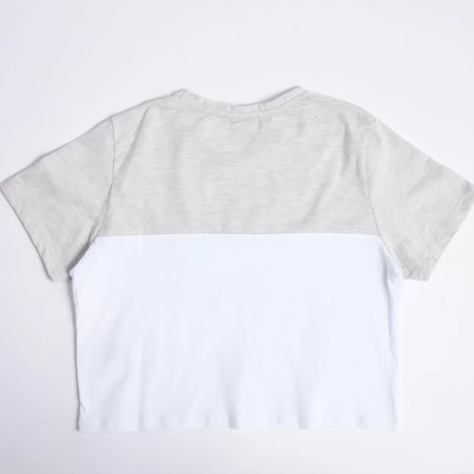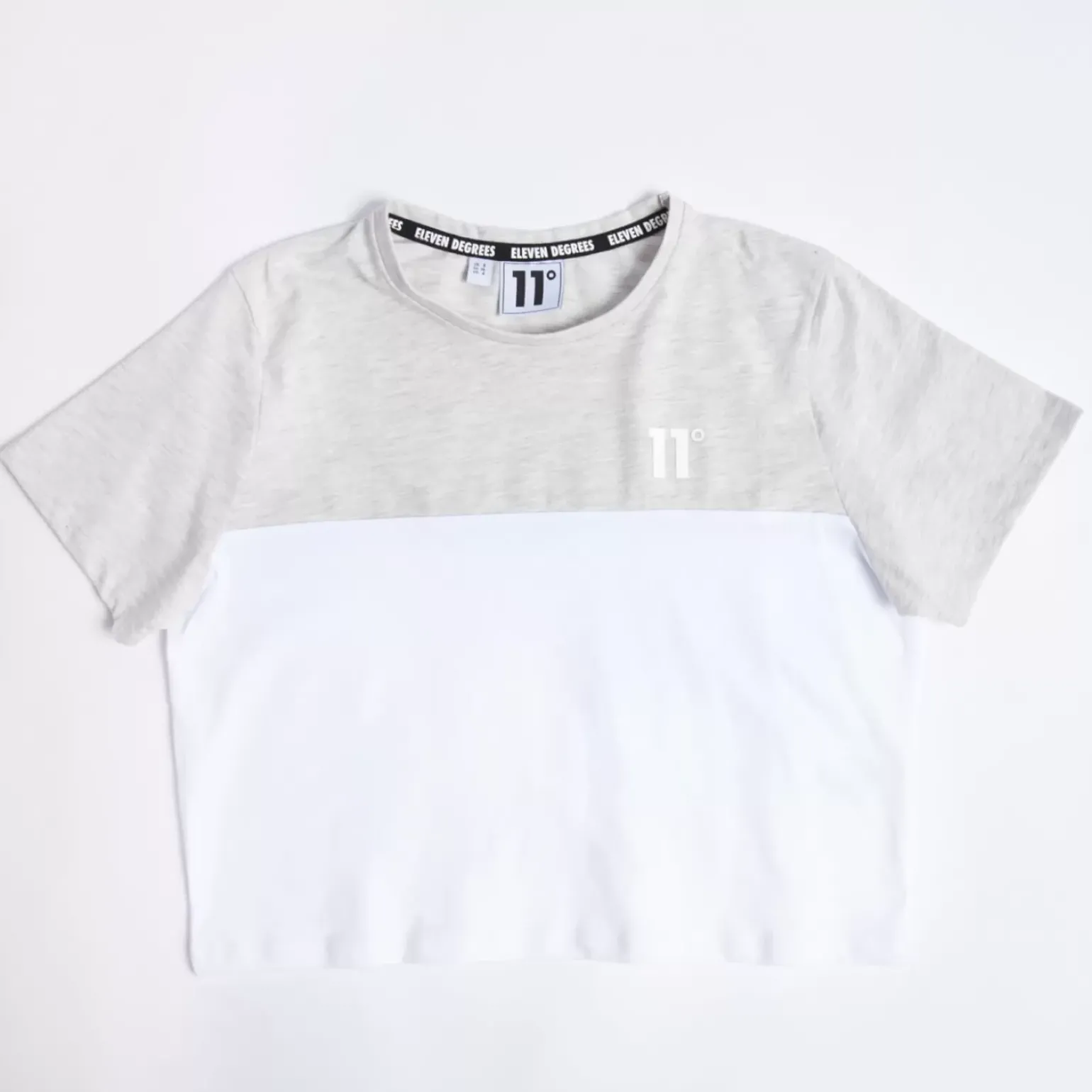 11 Degrees Womens Cut And Sew Cropped T-Shirt – Grey Marl / White