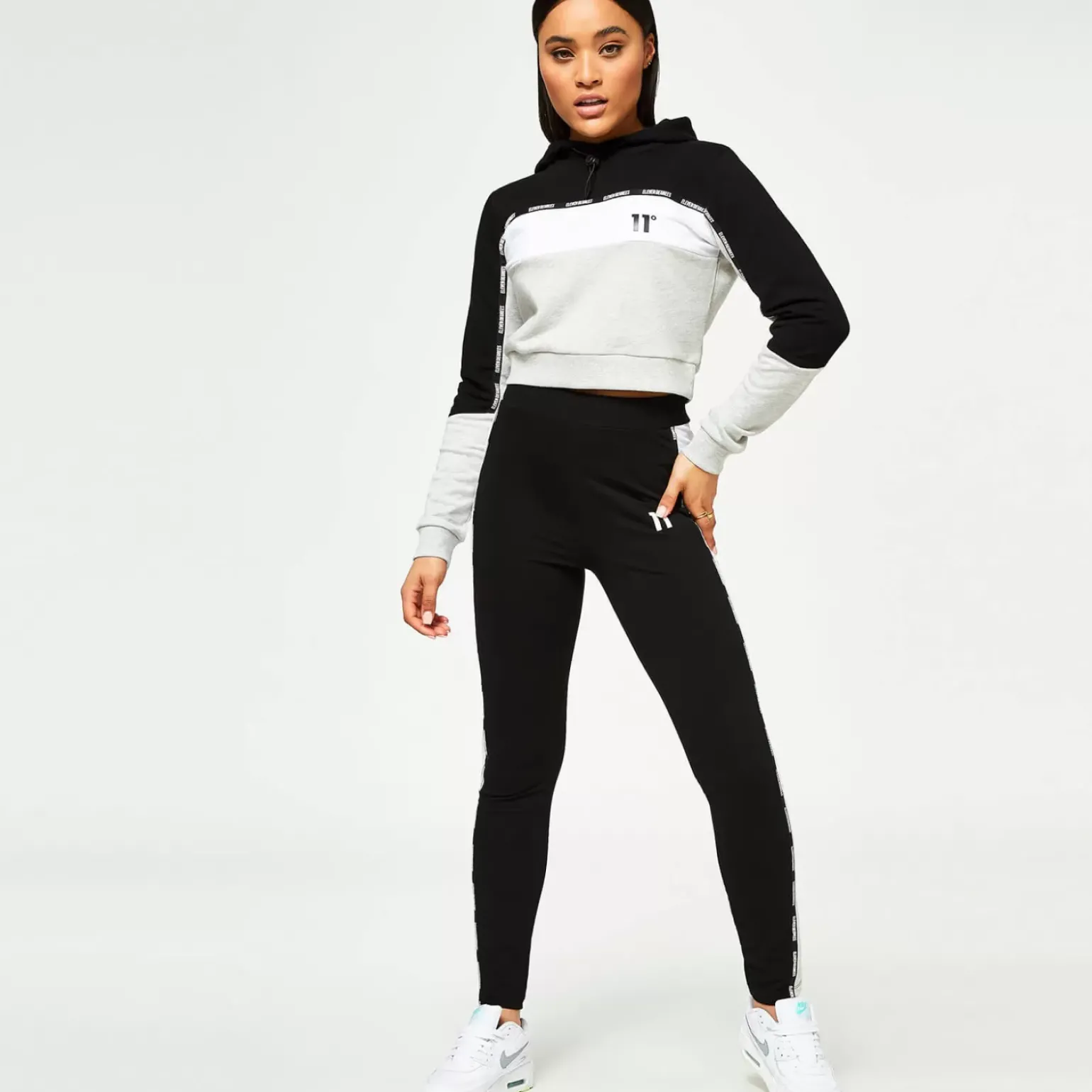 Be the first to review “11 Degrees Womens Taped Cut And Sew Cropped Pullover Hoodie – Grey Marl / Black / White” Cancel reply